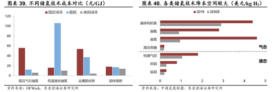 储氢材料目前处于试验阶段,克服技术问题后将迅猛发展。有机液体储氢技术具备储氢密度大、储存和远程运输安全、设备保养容易、成本低以及可循环使用等优点,但目前该技术存在熔沸点较高,需要专门的加氢、脱氢装置,操作性差等较多的技术难题,未来随着技术问题的突破,应用前景广泛。
