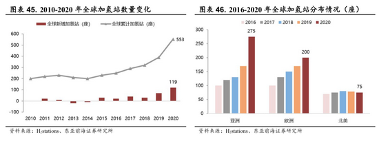 2.2.3)加氢站:加氢站建设提速,规模化推进成本下行