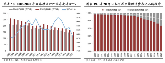 日本国内资源较为缺乏,一次能源供给94%来自海外,原油的消费98%集中在汽车燃油领域,原油87%来自中东地区。能源对外依存度过高,存在能源安全风险以及2050年温室气体减少 80%排放量的承诺,迫使日本加快寻找安全的替代能源,因此日本大力发展可再生能源,氢能试点不断铺开,氢能社会战略也应运而生。