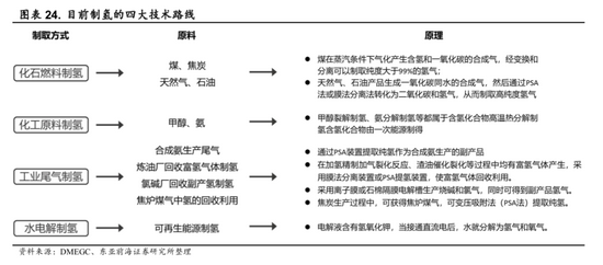 4)形式多样,适应不同需求:制氢方式有烃类裂解、蒸汽转化、电解水制氢以及工业副产等多种途径;氢气的不同形态可适应多种运输技术方案。