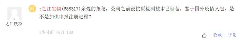 值得注意的是,已有投资者在上证e互动平台上催促之江生物加快申报注册相关产品进程。