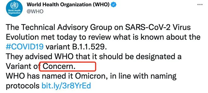 当地时间11月26日,世界卫生组织发布声明,将B.1.1.529新冠变异毒株列为“需要担忧”的变异株(Variant of Concern),并命名为Omicron(以第15个希腊字母命名,中文译名:奥密克戎)。