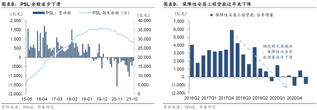 其二,银行保障性安居工程贷款,2018年曾高达约1.5万亿元(背后有央行提供PSL支持),其中政策性银行约占七成、商业银行约三成。随着棚改模式逐渐退潮,近两年保障性安居工程贷款与PSL余额均出现下滑。据住建部,建行、国开行已印发文件加大对保障性租赁住房的授信力度,截至今年8月建行已为保障性租赁住房授信658亿元。
