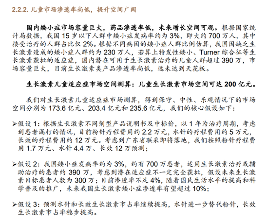 据德邦证券研报显示,我国矮小症市场容量巨大,药品渗透率低,未来增长空间可观。