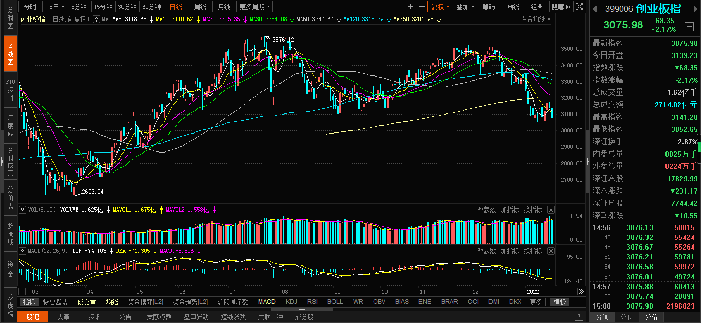 指数方面,创业板指盘中跌幅一度逼近3%,收跌2.17%,沪指收跌0.33%。两市成交额较昨日有所降低,合计10653亿元。