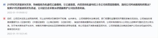1月18日晚,据《21世纪经济报道》引用一张聊天记录截图显示,市场上有公募基金组团买入上市公司的股票为私募接盘,该聊天中以恒帅股份(300969.SZ)作为示例。