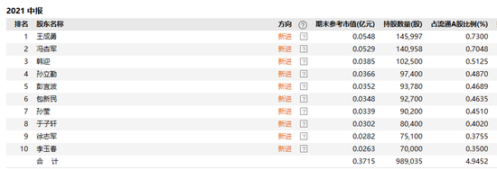 财报显示,2021年上半年,恒帅股份的前十大流通股东全部为个人投资者,持股总数为989035股,占流通A股比例的4.95%。