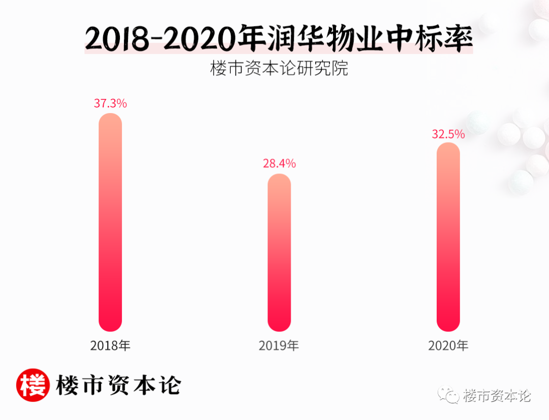 更令人担忧的是,润华物业在项目招投标中的竞争力。招股书显示,主要通过公开投标获取新的物业管理协议的润华物业,报告期内中标率持续在30%左右徘徊。