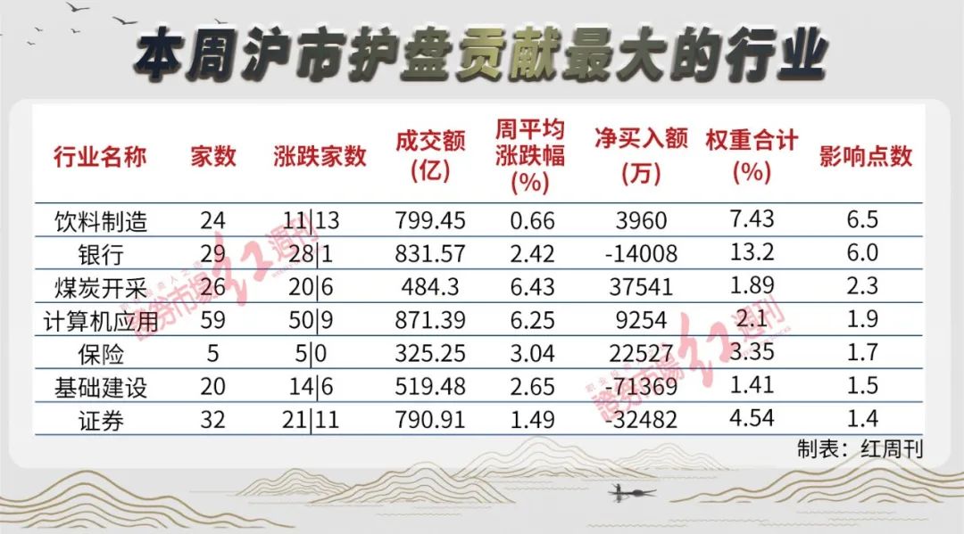 本周沪指弱势之下未创新低,全是仰仗下面几个行业的功劳。