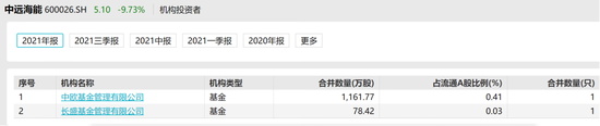 另一持该股基金中欧匠心两年持有对中远海能小幅减持。截至四季度末,中欧匠心两年持有对中远海能港股持股数量不变;中远海能A股持股数量为1161.77万股,较前一季度减少12.27万股。