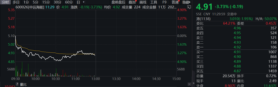 二级市场上,预亏后的首个交易日(1月24日),中远海能A股暴跌9.73%至5.1元/股。今日,中远海能继续下跌,截至午间收盘,跌超3%。