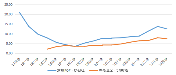 图2:FOF和养老基金的平均规模变动情况