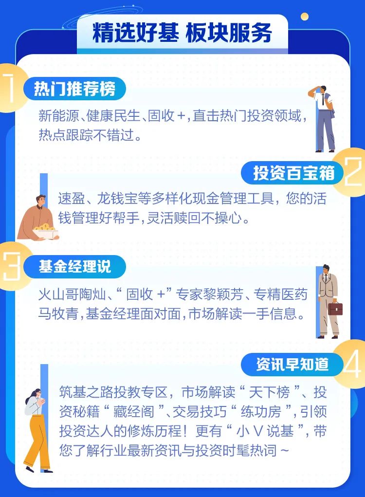 作为首批入驻的基金公司,建信基金倾力打造热门产品、海量资讯、优质赛道多项服务板块,为投资者提供细心、贴心、舒心的投资陪伴服务~