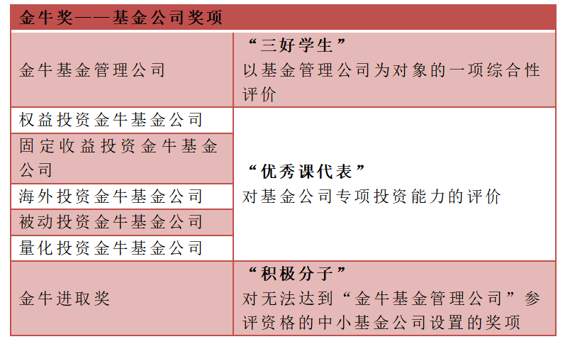 金牛奖设置了七大公司奖项,全面涵盖了考察基金公司的多个维度。