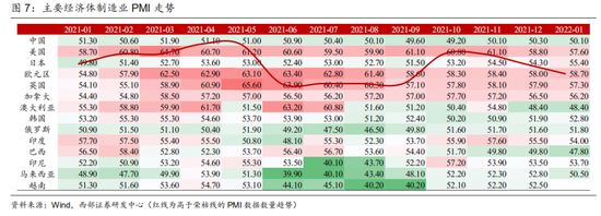 受到Omicron疫情影响,欧美PMI数据继续下滑。美国1月ISM制造业指数录得57.6(前值58.8),创2020年11月份以来新低,ISM非制造业指数降至59.9(前值62.3),为2021年2月来最低水平。美国1月Markit制造业PMI与服务业PMI终值分别降至55.5和51.2。欧元区1月IHS Markit综合PMI降至52.3(前值53.3),为2021年2月以来最低。