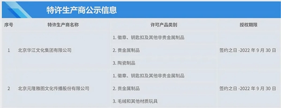 记者通过查询官方特许生产商公示信息发现,元隆雅图是仅有的三家许可产品类别中,包括毛绒玩具的企业之一,也是唯一的一家上市公司。