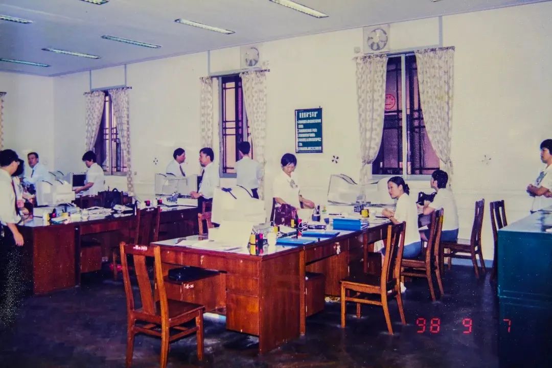 ◀︎ 20世纪90年代工行广州第一支行办公环境 ▶︎