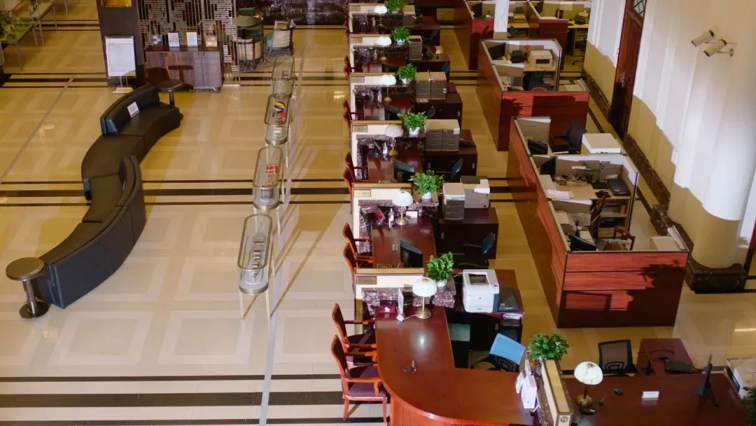 ◀︎ 现今工行广州第一支行办公环境 ▶︎