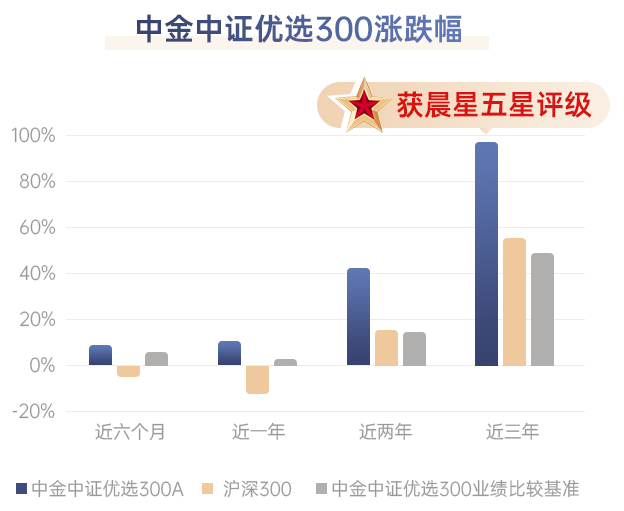 数据来源:Wind,中金基金,截止2022.1.21。中金优选300指数A近三年涨幅为90.59%;数据经过托管行复核,晨星评级来自于晨星官网,截止2022.1.21。
