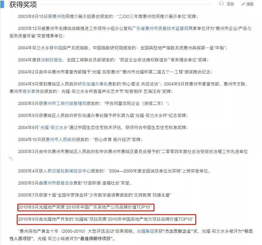 公开资料显示,光耀集团2002年在惠州成立,涉足建筑、物业、金融、教育等多个领域,不过还是以房地产开发为主营业务,曾开发“光耀·荷兰水乡”“光耀城·先生的湖”等项目,曾被评选为“中国房地产百强企业”。