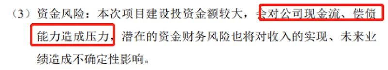 对此,合盛硅业坦言,项目资源来源为自筹,可能会对现金流及偿债能力造成压力,存在潜在的资金财务风险。