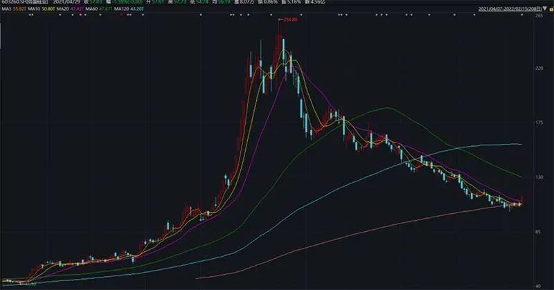 纵观近一年来合盛硅业的二级市场走势,总体呈现先扬后抑。去年9月,公司股票曾一度触及246元/股左右的高位,如今重新回落。截至今日午盘,合盛硅业股价大涨8.47%至115.04元/股。