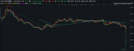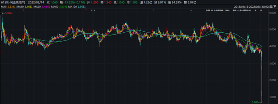 2月11日正荣地产股价下跌66.39%,总市值为53.72亿港元,较上个交易日蒸发106亿港元。2月14日,该公司续跌15.45%,收于1.04港元/股