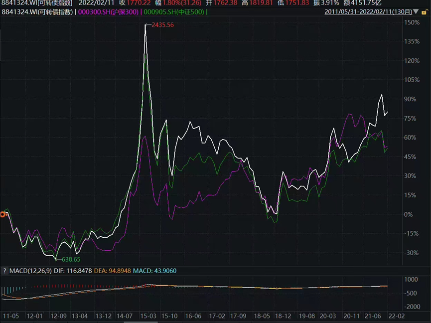 从上图中,我们可以直观地看到,相对于正股,可转债指数的短期波动更大。