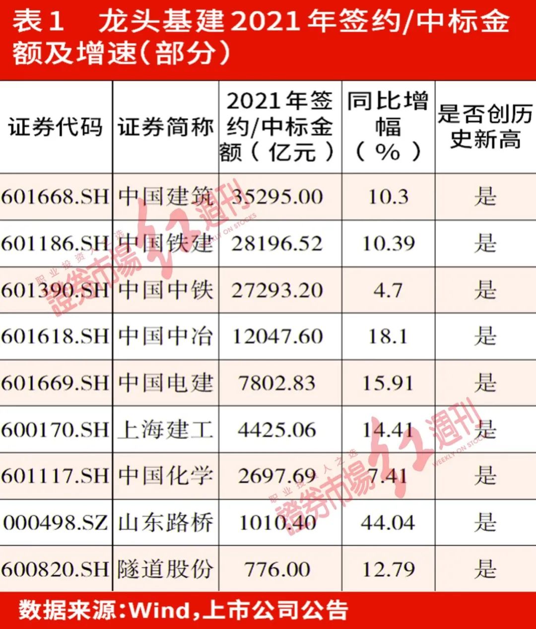 事实上,在政策加码、二级市场逆市走强背后,以中字头央企、地方头部企业为“主力”的基建在去年交出了一份亮丽的签约“成绩单”。