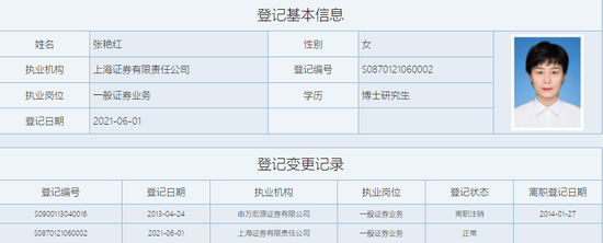 新任上海证券副总经理的杨艳红女士,拥有博士学历。此前曾任中国煤炭经济学院教师、助教,万得信息技术股份有限公司高级产品经理,中国人保资产管理股份有限公司固定收益总部投资经理、高级投资经理、资深高级投资经理,申银万国证券固定收益总部执行经理,太平资产管理有限责任公司资产管理事业部副总经理,太平养老保险司投资事业中心副总经理(总经理级)。2021年6月,她加入上海证券。
