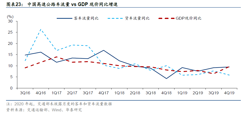 在收入端,通行费增长的驱动力是经济增长,其他影响变量包括路网效应和收费标准。宏观经济增长驱动收费公路的车流量增加,增厚项目利润并且提升资产ROE。路网效应通过平行路分流、交叉路引流等竞争结构变化影响车流量。除车流量外,收费标准的变化亦影响通行费收入。