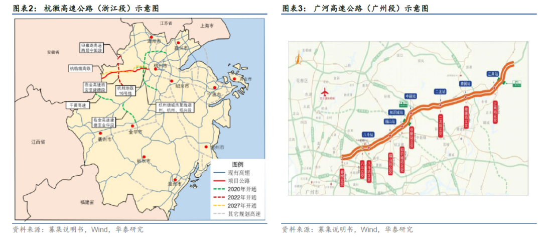 广河高速连接广州、惠州与河源,途径经济发达的珠三角核心区与经济欠发达山区。项目(广河高速广州段)于2011年12月全线建成通车,双向六车道,全长71公里,剩余收费期为16年。交通量以客车为主,占比接近70%。从2017年至2019年通行费收入复合年均增长9.1%。项目建设投资概算约为70亿元,折合0.97亿元/公里。2019年项目含税通行费收入约7.0亿元,折合每公里含税收入约997万元。据广州广河REIT招募说明书,广东省交通规划院预测广河高速公路(广州段)在2021-2031年车流量年均增长7.5%,2032-2036年车流量年均增长4.5%。其中重要假设包括:1)2025年增天高速开通,其线路走向与项目公司基本平行,并且主要承担广州地区与增城及沿线地区交通需求,产生分流影响;2)2030年广河高铁通车,线路走向与广河高速平行,产生分流影响。