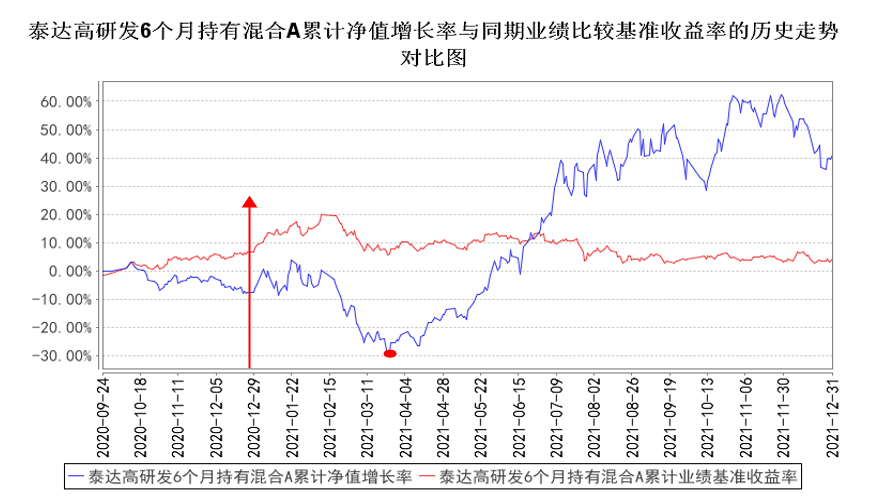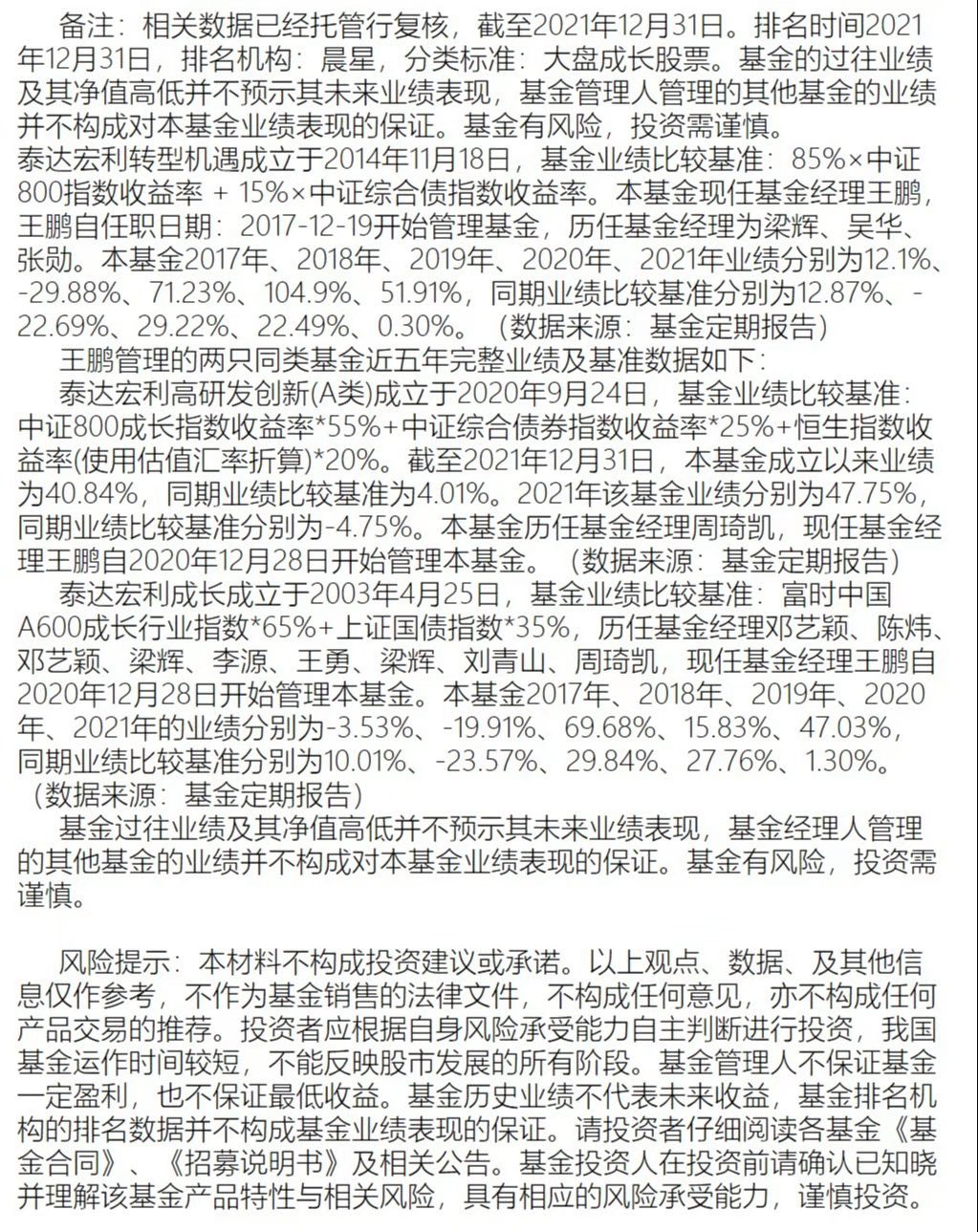 王鹏自2020年12月28日接手泰达宏利高研发,该产品在2021年上半年经历短暂调整后,业绩上涨明显。(该产品完整业绩见备注)