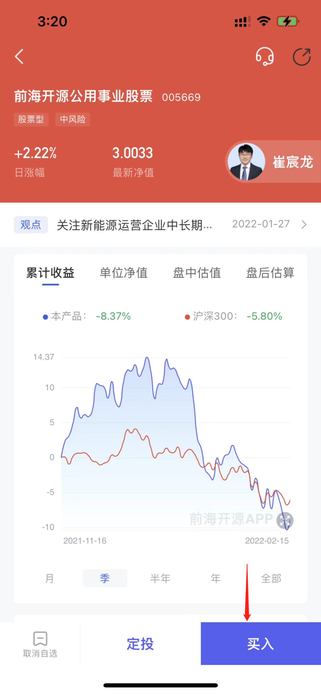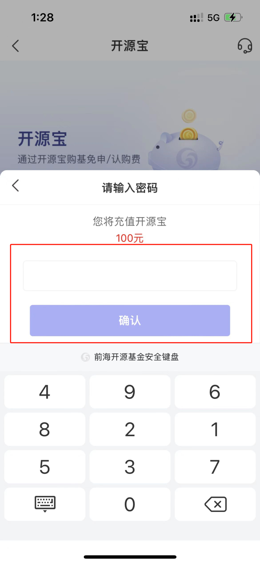 搜索基金代码:004368(前海开源聚财宝A),进入开源宝页面,点击“立即充值开源宝”;