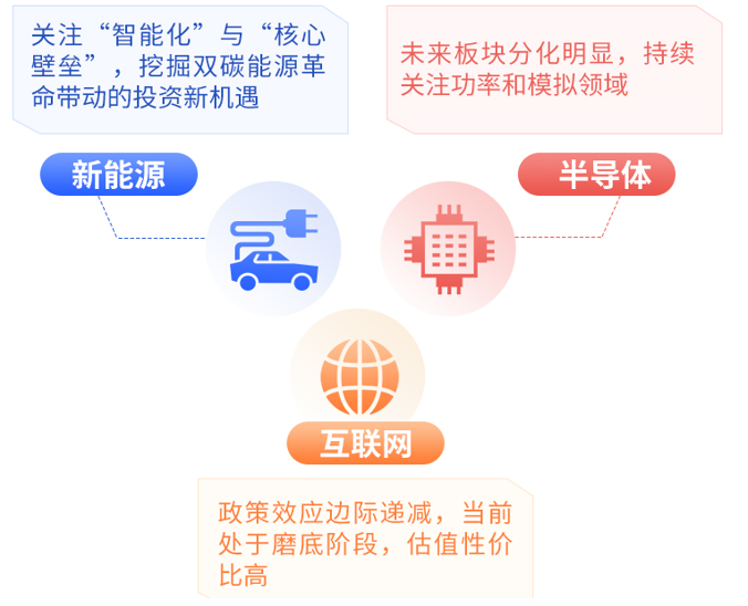 对于新能源和半导体,张建胜认为是长期的方向,但考虑到新能源与半导体等行业内部景气度也开始分化,简单做行业配置“躺赢”的策略会阶段性失效,需要下沉到三级甚至四级子行业找结构性机会。