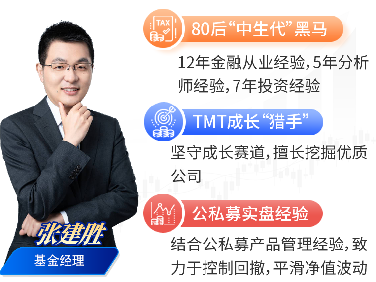 拟任基金经理张建胜拥有超过12年的证券、基金从业经验,7年的投资管理经验,经历了完整的市场周期淬炼,而且尤为擅长绝对收益思维下的成长股投资,回撤控制的能力比较突出。