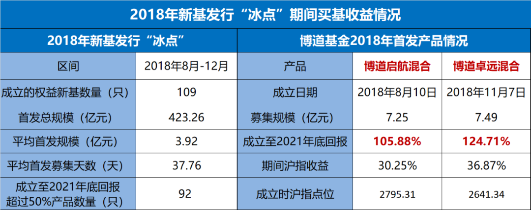 从过去经验来看,2018年8月和11月,博道基金逆市发行的权益新基:博道启航混合和博道卓远混合基金,首发认购客户持有至今取得较好的收益回报和超额收益。
