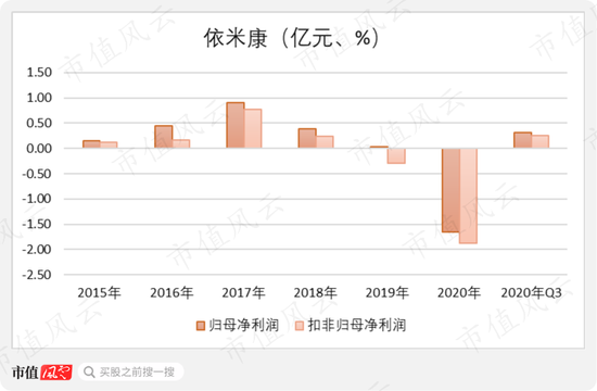 从整体业绩来看,依米康在2020年还经历了大幅亏损,实现归母净利润-1.66亿元,将其上市以来本就不高的累计利润亏得所剩无几了,而扣非归母净利润还要倒贴近2000多万。
