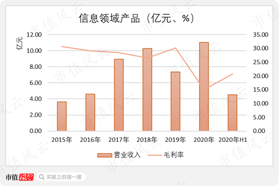 自2015年单独披露信息领域产品以来,信息领域的收入规模似乎并没有特别明显的变化,在2019年还曾经历过大幅波动。