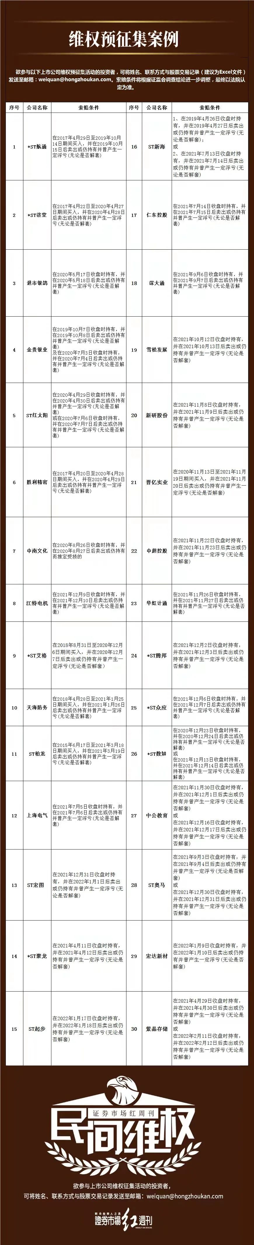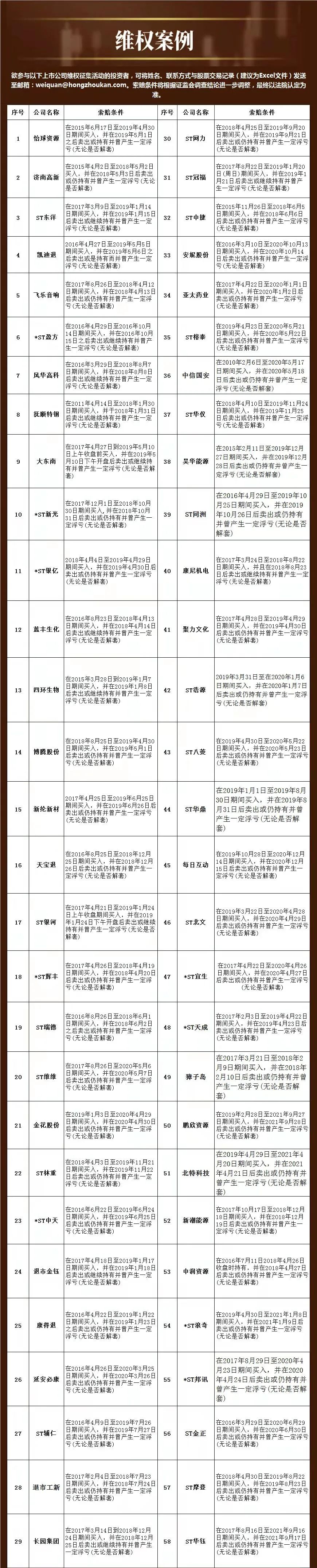 欲参与上市公司维权征集活动的投资者,可将姓名、联系方式与维权个股交易记录发送至邮箱: