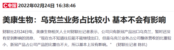 美康生物:乌克兰业务占比较小 基本不会有影响