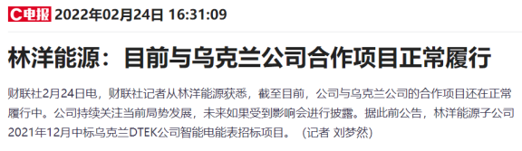 林洋能源:目前与乌克兰公司合作项目正常履行