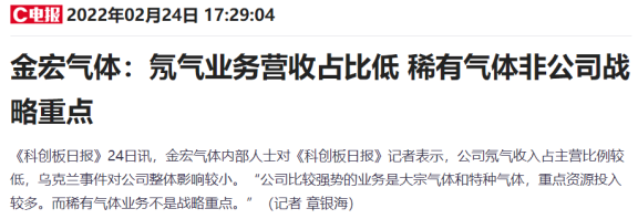 金宏气体:氖气业务营收占比低 稀有气体非公司战略重点