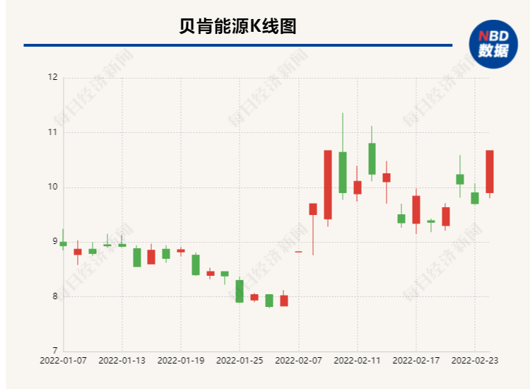 值得注意的是,2月24日A股油气概念股继续冲高,贝肯能源股价在24日上午拉升至涨停,收盘价为10.67元/股。