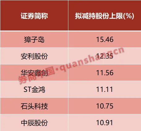 据统计,年内共有472家公司股东披露了减持计划,其中獐子岛、安利股份、华安鑫创、ST金鸿、石头科技和中辰股份拟合计减持数量超过了10%。