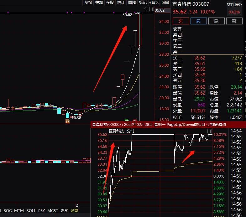 7个交易日,直真科技股价从18.28元,一口气暴涨到35.62元,股价逼近翻倍。市值达到37亿元。