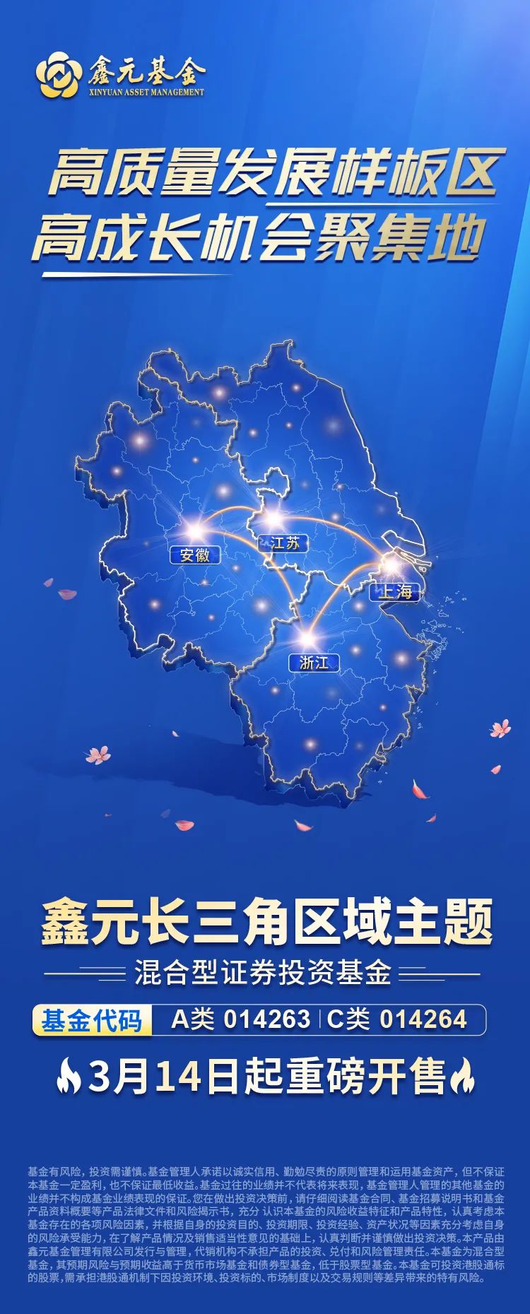 鑫元基金顺势推出精品——长三角区域主题混合型证券投资基金(A类014263/C类014264),将于3月14日重磅新发!