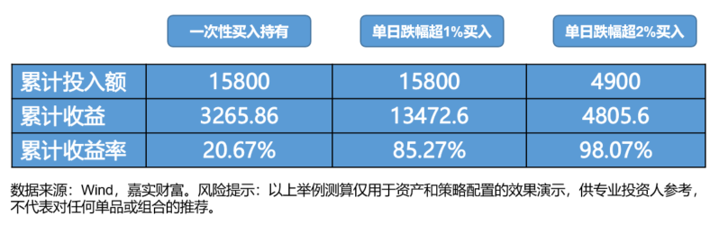 单日下跌超过1%即买入100元:共158次,总投入15800元。