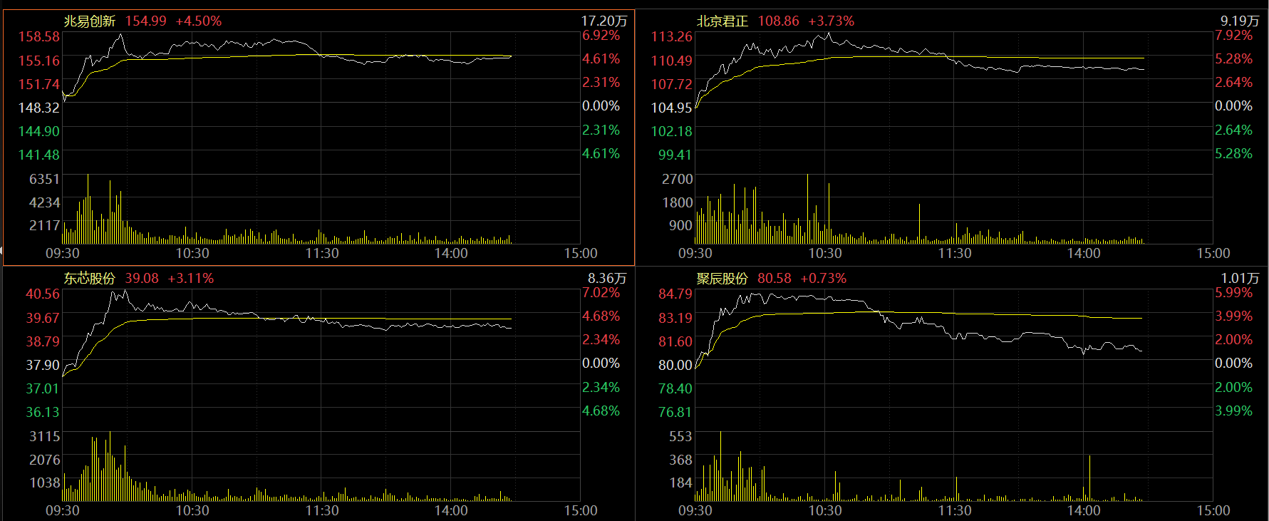 值得注意的是,今早半导体板块震荡走强,其中兆易创新、北京君正等多只存储芯片个股盘中涨幅超过5%。