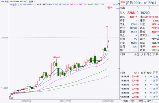 在伦镍暴涨的刺激下,沪镍主力合约开盘一字涨停,涨幅15%。